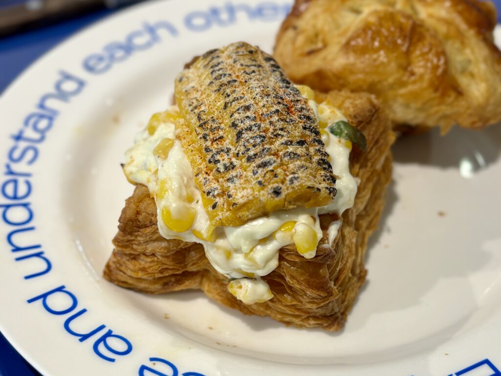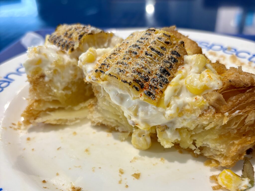 アーモンドクリームの芳醇な香りとコーンチーズのしっとり感が絶妙に調和。グリルしたトウモロコシの香ばしさがアクセントになり、幸福感のあるひと口に。