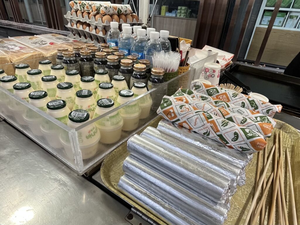そのほかにも、キンパ(₩3,000)、かまぼこおでん(₩2,000)、韓国で定番人気の「バナナ牛乳(バナナウユ)」(₩2,000)など、軽食とドリンクのラインナップも充実。韓国らしい屋台の魅力がギュッと詰まっています。