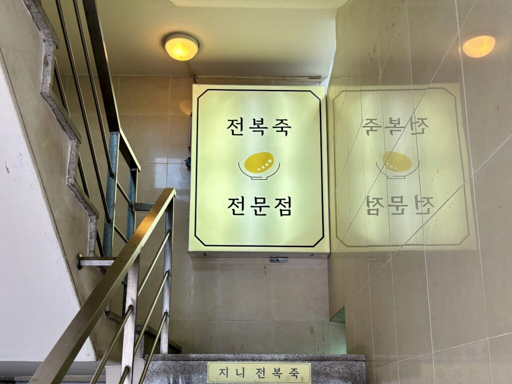地下鉄2号線「駅三駅」から徒歩約6分。江南エリアの路地裏に店を構えるジニあわび粥は、済州島産あわびを使った粥専門店です。