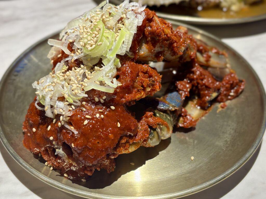 甘辛いコチュジャンベースのタレで漬け込んだピリ辛の蟹料理。シャープな辛さの中に旨味が潜み、食欲を刺激します。冷たい状態で食べるのに、香辛料の温度感が舌に伝わるような感覚が面白く、一口ごとにクセになる味わいです。
