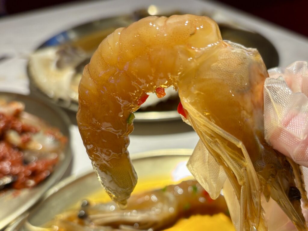 ぷりっとしたエビに甘辛い醤油ダレが染み込んだ逸品。ひと口で口に広がる甘みと食感のコントラストが絶妙で、蟹とはまた違った海鮮の楽しみを味わえます。ほんのりとフルーティーな香りが加わり、さっぱりとした後味も◎