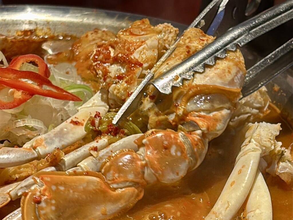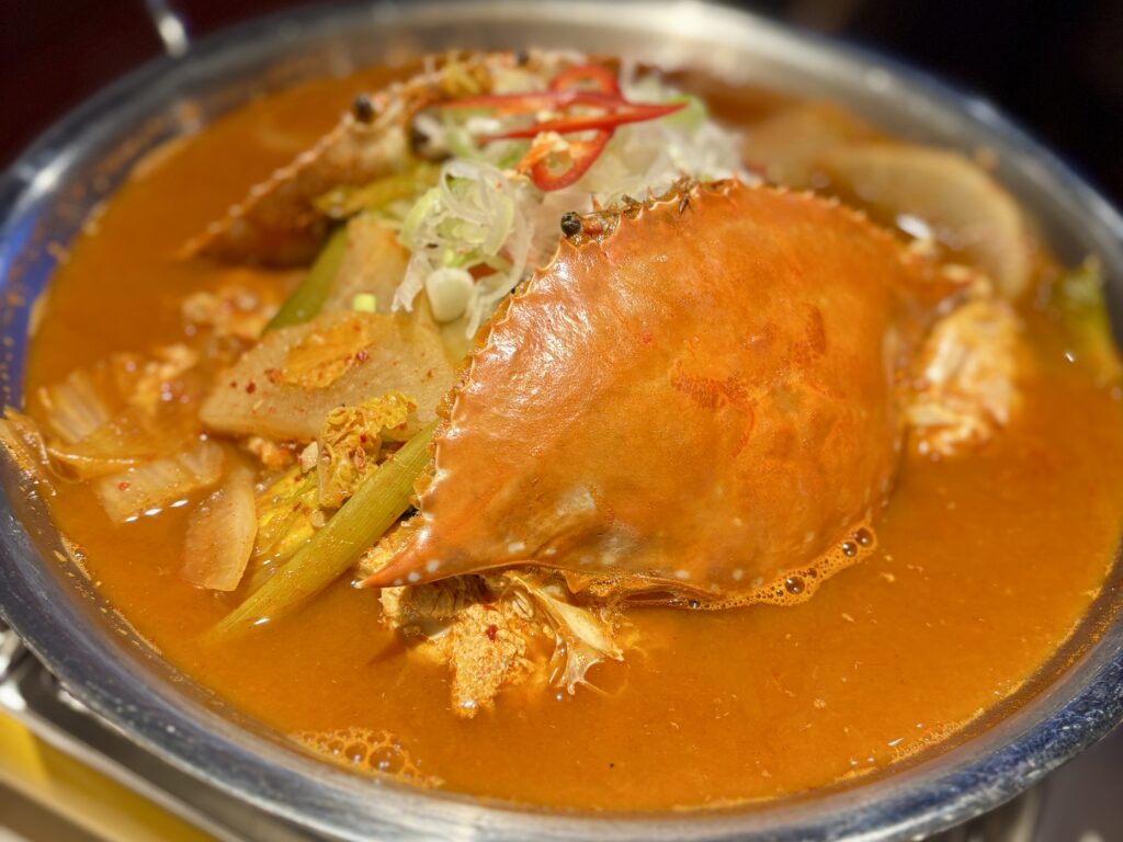 熱々の鍋で提供されるスープ料理。蟹の出汁がしっかり抽出されたスープは、濃厚で深みのある味わい。豆腐やネギなどが加わり、韓国定番の家庭的な雰囲気も感じられます。蟹の身をほぐしながらじっくり楽しめる、満足度の高い一品です。
