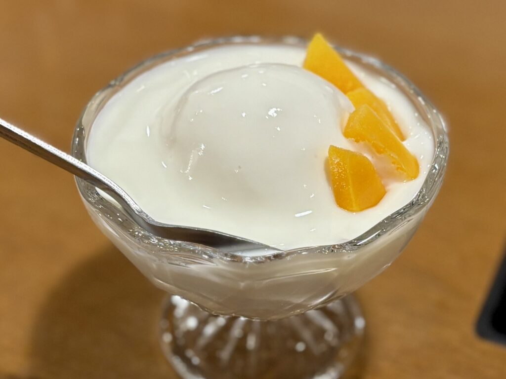 ヨーグルトとバニラシャーベットの組み合わせが、食後の口をすっきりと整えます。重たさを残さない締めとして好印象です。