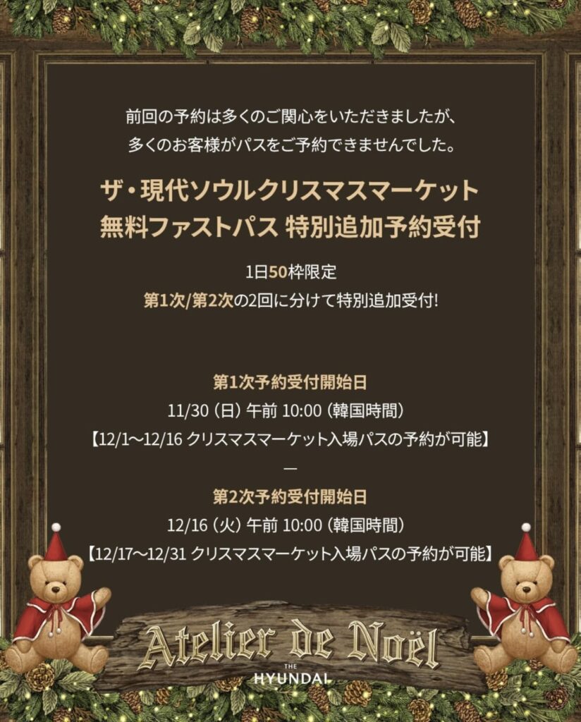 【2025 最新】ザ・現代ソウル「クリスマスマーケット」入場パスが特別追加公開|外国人限定・1日50枠