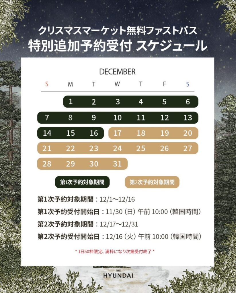 これを受けて、現代百貨店 × Klook が特別に“外国人専用”追加枠を発表しました。1日50名限定、しかも2回に分けての先着形式。