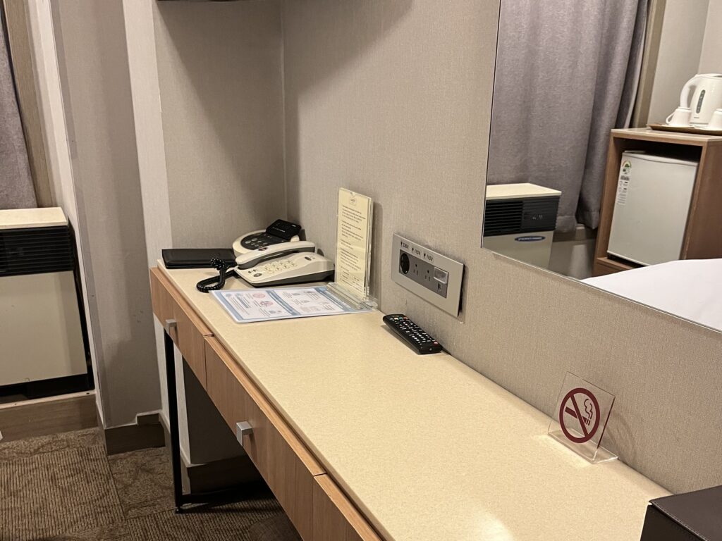 フロントには親切で専門的なスタッフが常駐。 チェックインや荷物預けもスムーズで、観光の合間にホテルへ戻って休憩できるのも嬉しいポイント。 館内は禁煙で、喫煙者には携帯灰皿の配布あり。室内喫煙は罰金対象なので注意が必要です。