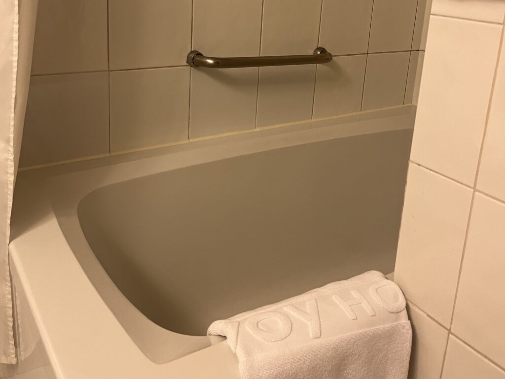 浴室にはシャワーとバスタブがあり、旅の疲れを癒すのにぴったり。 アメニティにはシャンプー・リンス・ボディウォッシュ・ドライヤー・石鹸などが揃い、清潔感も◎。 ※歯ブラシは持参または購入が必要です。
