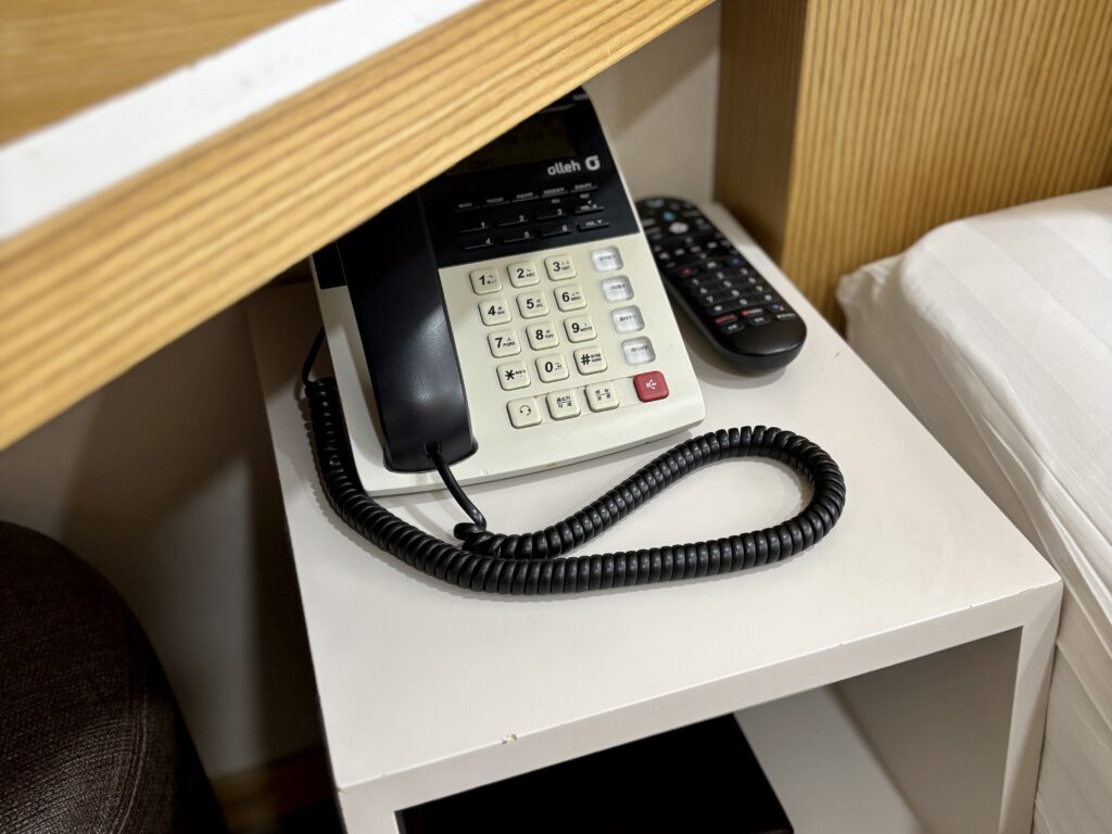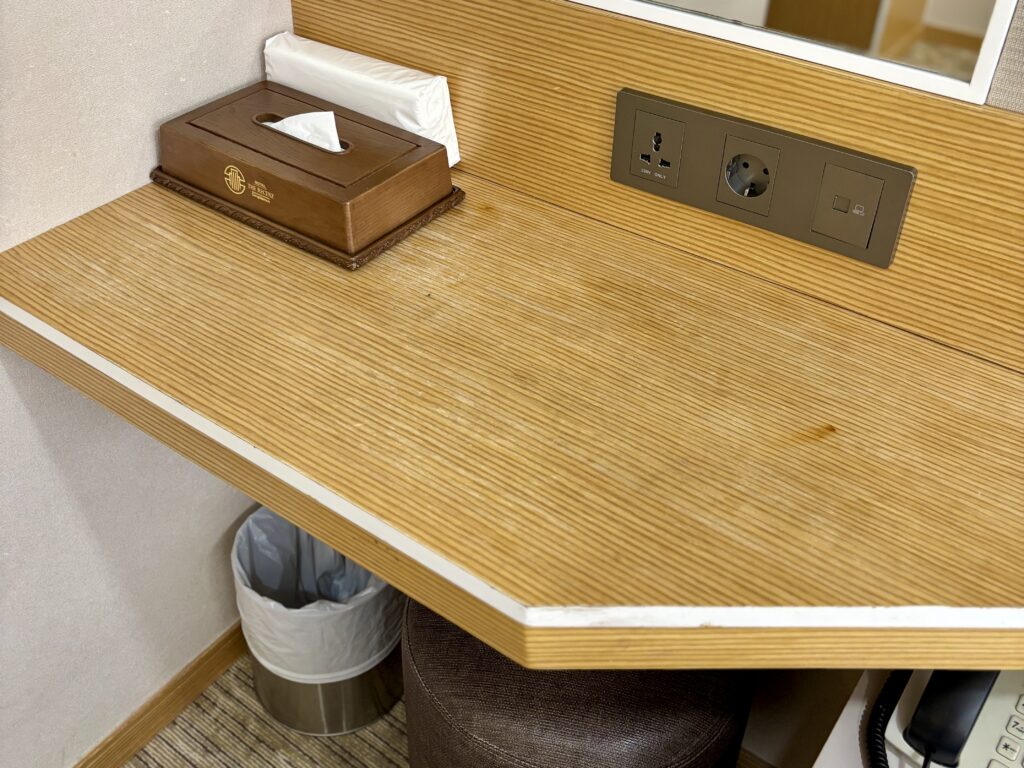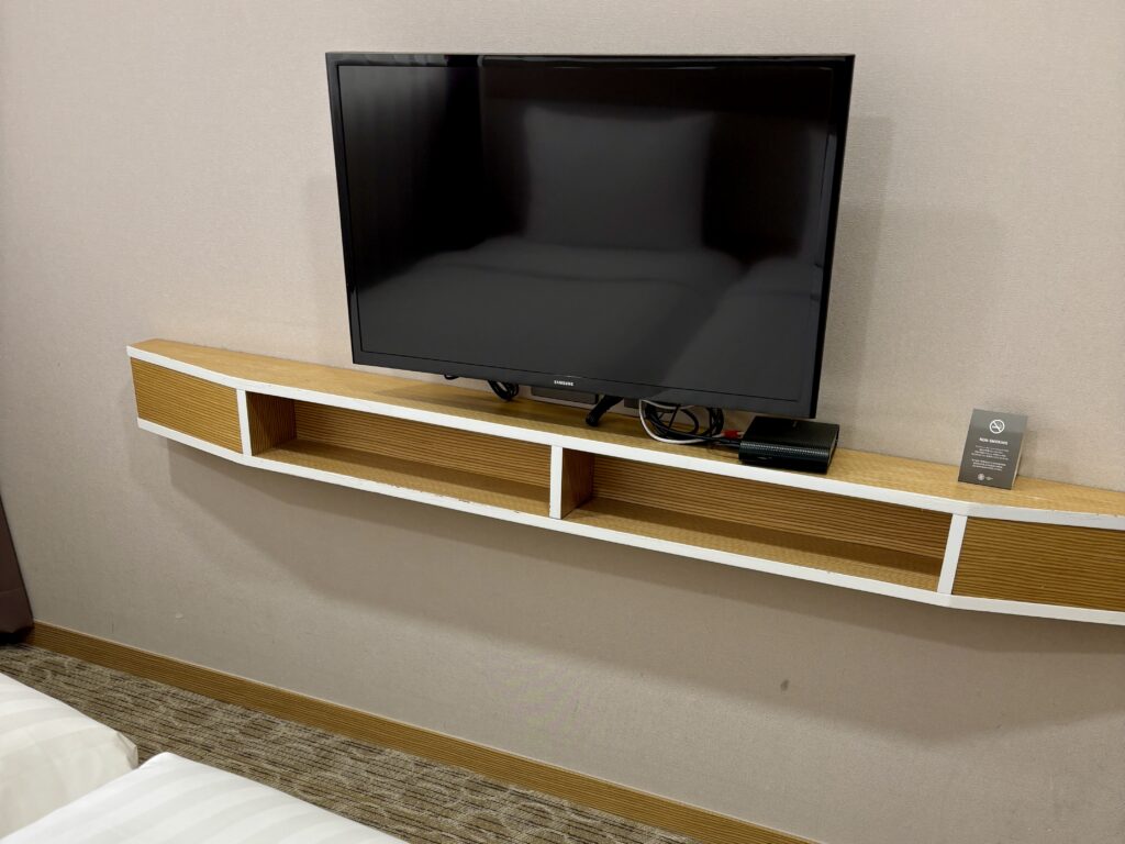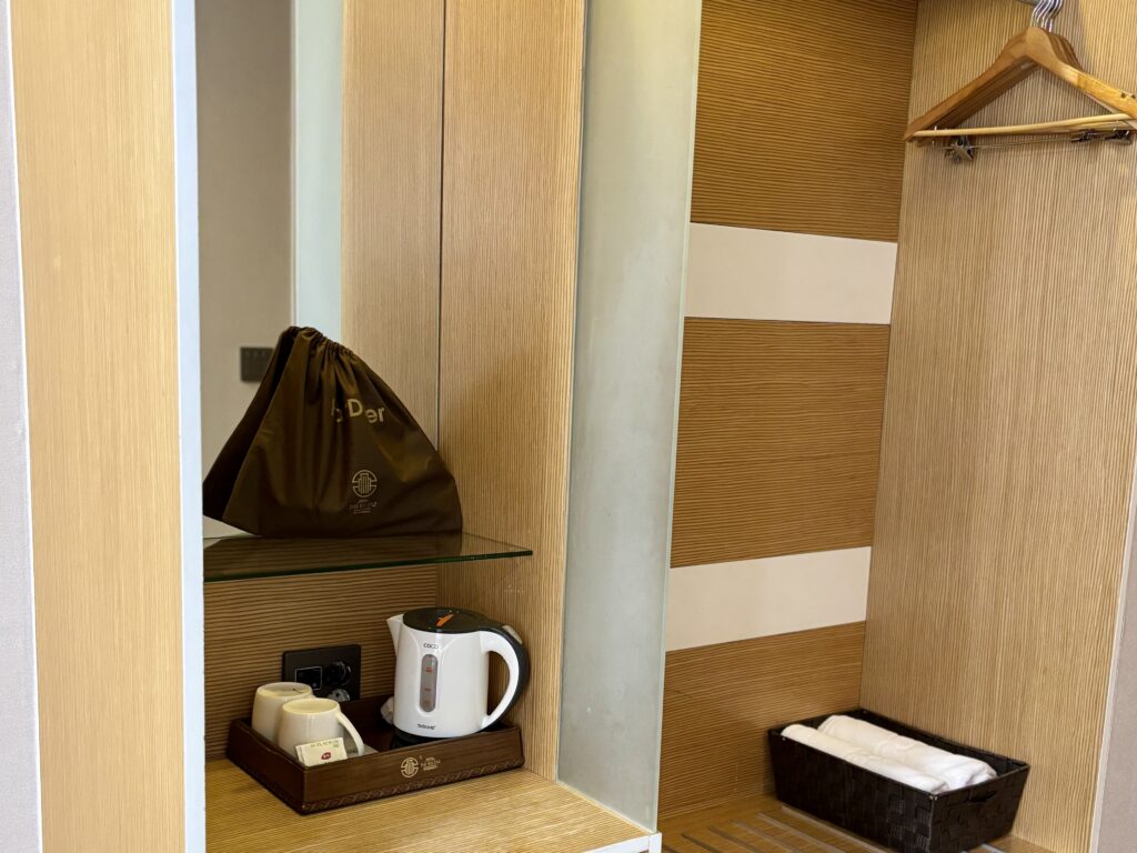 部屋には薄型テレビ、冷蔵庫、電気ケトル、セーフティボックス、エアコン、無料Wi-Fiなどが整っており、実用性と快適さが両立。毎日のミネラルウォーター補充など、細やかな配慮も印象的でした。